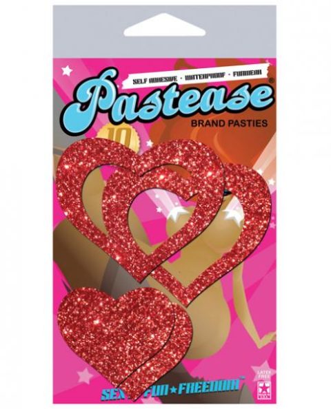 Pastease Glitter Peek A Boob Hearts Pasties Red