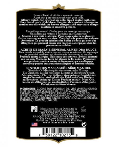Kama Sutra Aromatics Massage Oil Sweet Almond 2oz