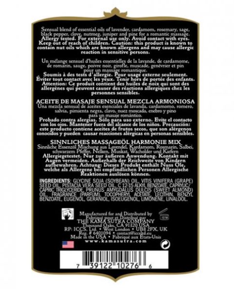 Kama Sutra Aromatics Massage Oil Harmony Blend 2oz