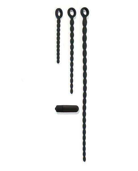 The Piss Holer is a sounding kit for the beginner to the advanced enthusiast. The kit includes three silicone sounding rods in graduated lengths and thicknesses. The beaded flexible sounds bend with the body, to make it easier to go deeper and hit your prostate. The beaded design allows lubricant to stay between the beads as you insert them, to make it easier to slide in without re-lubricating so often. The kit also includes an interchangeable 7-speed vibrating bullet, with 7 different strengths and patterns that travel down the entire length of each sound. When inserted through the circular opening on the top of each sound, the bullet also acts as a handle to easily guide each sound while inserting for that unique prostate sensation that you crave. Made of premium, medical grade silicone. These urethral sounds are easy to sterilize and body safe for an all new sounding experience. Soft Touch Silicone 3 Graduated Sizes Intense Stimulation Super Flexible Stimulates Prostate Small Length: 5.5 inch (14 cm) Largest Width: 0.35 inch (9 mm) Medium Length: 8.7 inch (22 cm) Largest Width: 0.39 inch (10 cm) Large Length: 16.1 inch (41 cm) Largest Diameter: 0.47 inch (12 mm) This product is safe with all lubricants, completely hypoallergenic, non-irritating and compatible with sensitive skin.