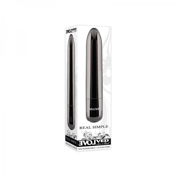 Real Simple Sleek and discreet, this powerful bullet targets your pleasure with its tapered tip and robust 10-speed motor. Beautifully smooth and stylish, the glossy black chrome finish slips and slides where you want it most – on all your favorite erogenous zones. Easy to grab on the go, it`s elegantly slim and petite – and simple to use with a one-button control and USB charging cable. Enjoy your bullet in the bath or shower as it`s completely water submersible and easy to clean. Rechargeable black chrome bullet Powerful 10 function vibrating motor Tapered tip targets your favorite hot spots Metal finish feels sleek and smooth Easy-to-use single LED control button Made from black chrome finished ABS plastic Buttons and detail made from silicone 3.94 inches long, 0.8 inches wide Phthalate andamp; latex free Waterproof andamp; submersible Rechargeable, USB cable included
