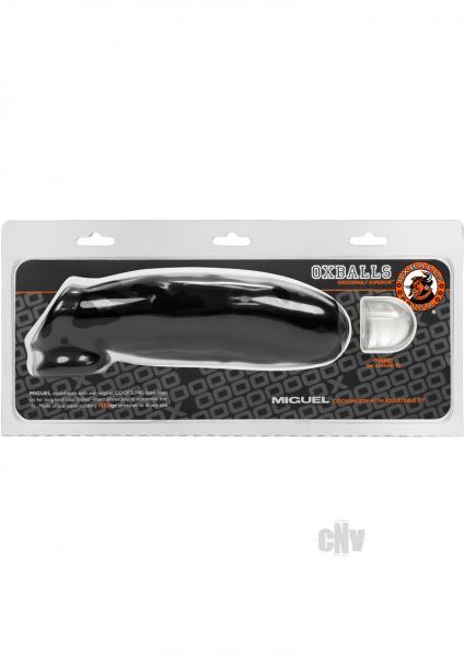 Miguel Uncut Cock Sheath Penis Sleeve attaches to your junk by a built in cock-sling base and melds to you like a second skin. For a tighter fit, use the included nub that is designed to lock into the hollow chamber making the inside shaft shorter by about 1 inch. Miguel Uncut Cock Sheath is a meaty vein covered cock with a realistic hood and thick piss slit. Made using body safe materials Flex-TPR. Color Black. Compatible with all types of lubricant. Always clean before and after use. Features overall length 8.25 inches, inner core length 7 inches, insertable toy length 7.25 inches. Circumference 7 inches. Weight 7.5 ounces.